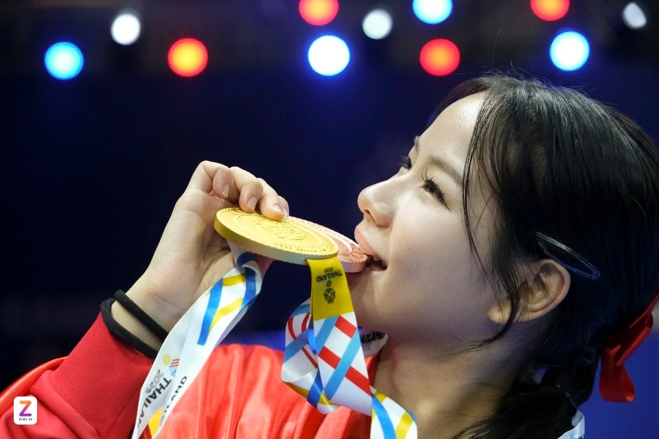 Lê Trần Kim Uyên (24 tuổi) là nữ VĐV đội tuyển taekwondo Việt Nam vừa giành huy chương vàng ở nội dung quyền sáng tạo đồng đội hỗn hợp và huy chương đồng nội dung quyền tiêu chuẩn đồng đội nữ. Đây 2 trong 3 huy chương của của đội taekwondo Việt Nam tại SEA Games 33. |