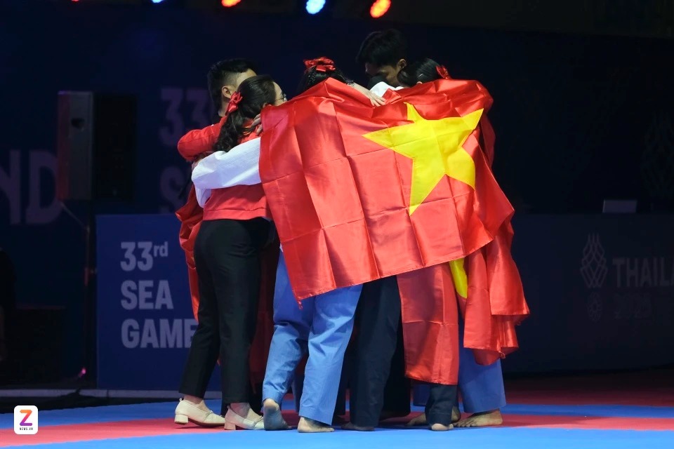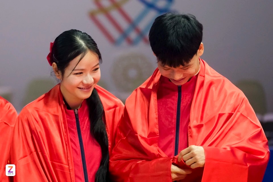 Trong không khí sôi động của nhà thi đấu tại Bangkok, Thái Lan, các trận quyền đồng đội thu hút sự chú ý của khán giả. Ở màn biểu diễn quyền tiêu chuẩn đồng đội nữ, Kim Uyên mang về tấm huy chương đầu tiên của mình tại SEA Games 33. |