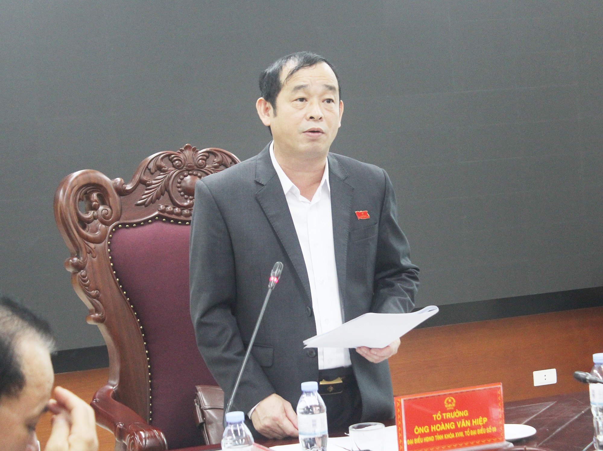Đại biểu Hoàng Văn Hiệp – Bí thư Đảng uỷ, Chủ tịch HĐND xã Đô Lương làm Tổ trưởng, chủ trì điều hành phiên thảo luận tại Tổ 3. Tham dự phiên thảo luận còn có lãnh đạo các Sở, ngành, đơn vị, địa phương có liên quan.
