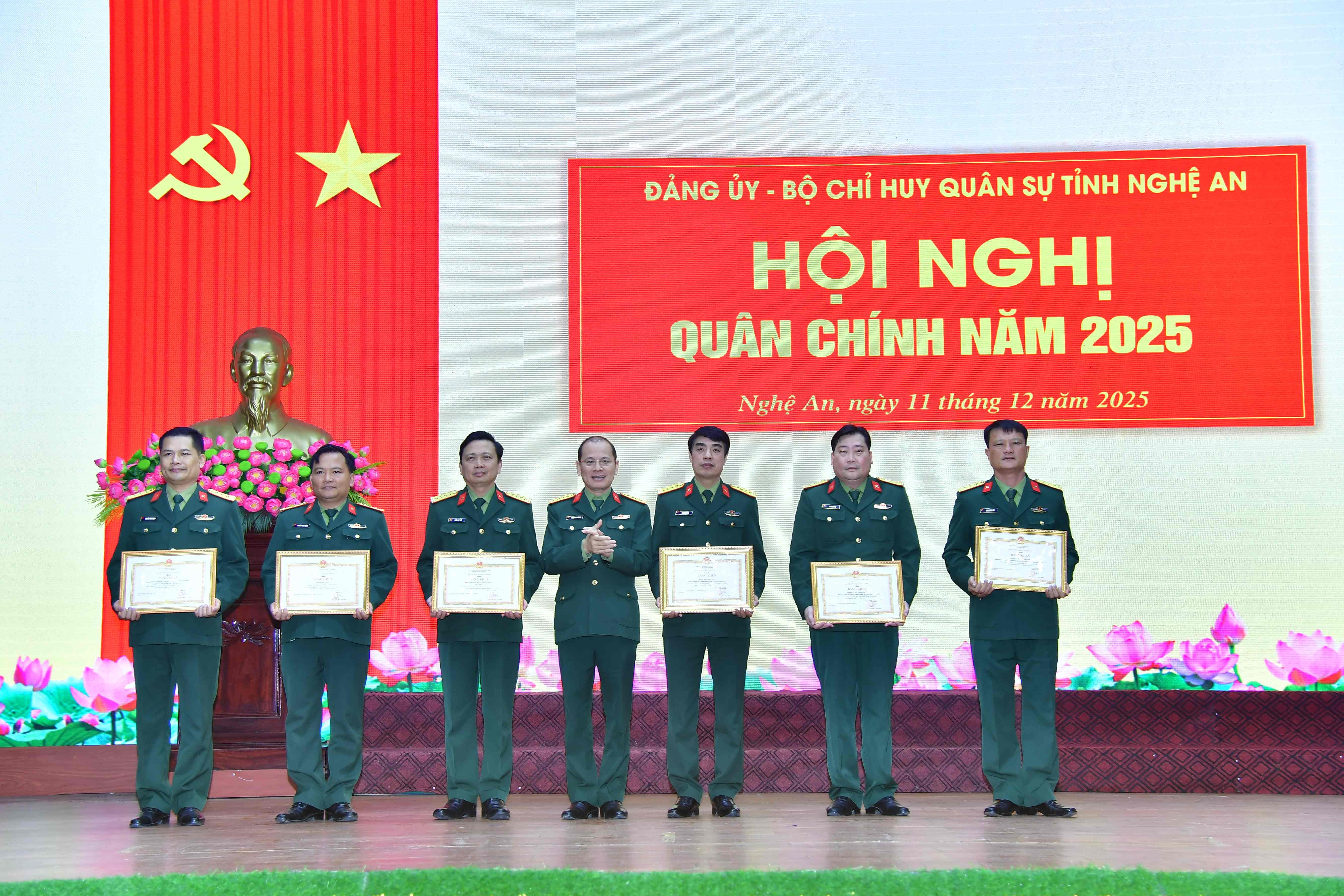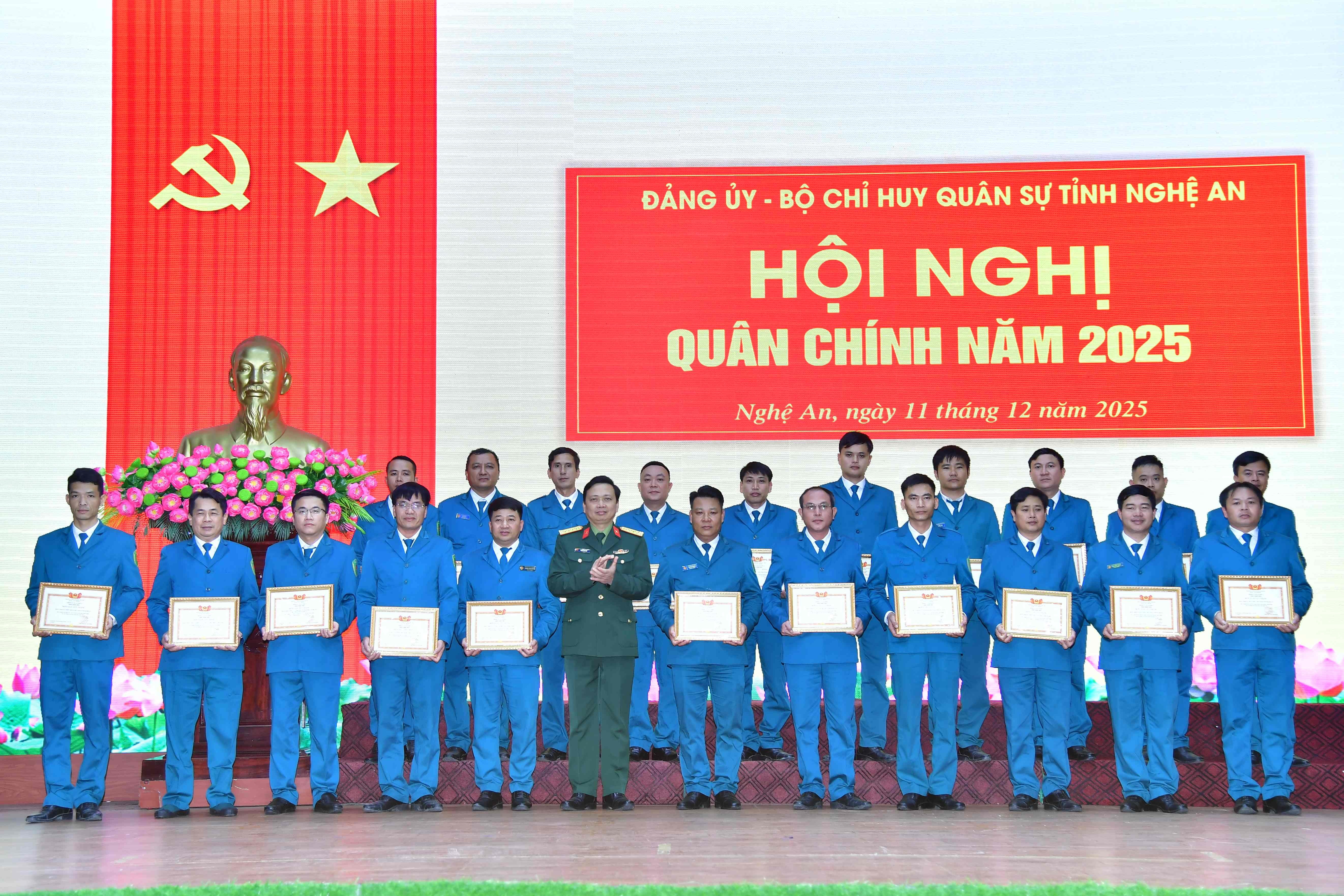 Hội nghị đã thảo luận, thống nhất, đề xuất một số nội dung trong triển khai thực hiện nhiệm vụ quân sự - quốc phòng năm 2026; trao Cờ thi đua và Bằng khen của Bộ Quốc phòng, Bộ Tư lệnh Quân khu 4, Bộ CHQS tỉnh cho 28 tập thể, 225 cá nhân lực lượng bộ đội thường trực và 84 tập thể, 294 cá nhân lực lượng Dân quân tự vệ vì đã có thành tích xuất sắc trong phong trào Thi đua Quyết thắng của Lực lượng vũ trang tỉnh Nghệ An năm 2025.