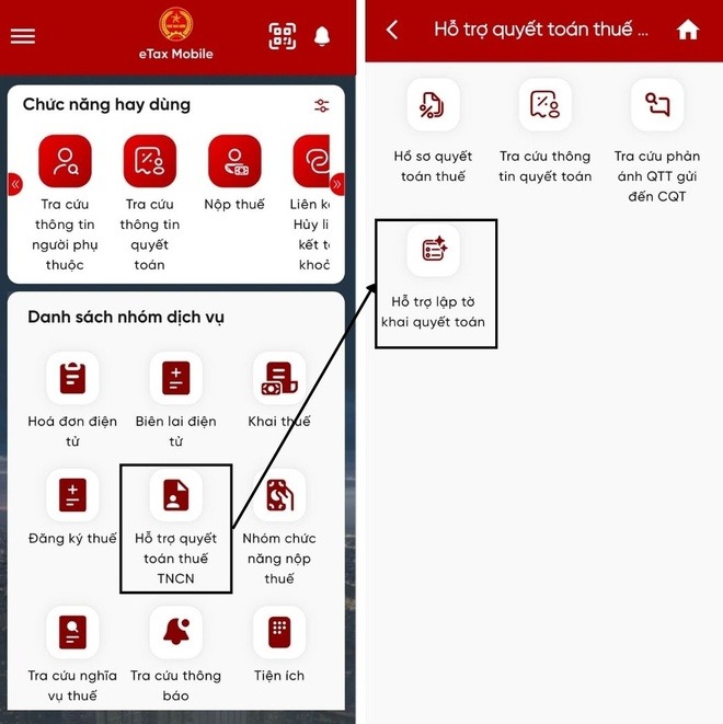 Cách lập tờ khai quyết toán trên eTax Mobile
