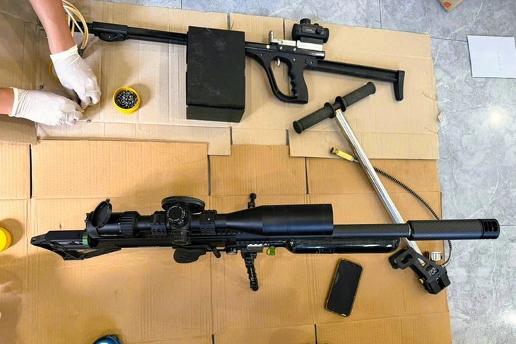 Lực lượng chức năng đã thu giữ một khẩu súng hơi, 592 viên đạn chì cùng nhiều vật chứng khác liên quan đến vụ án.