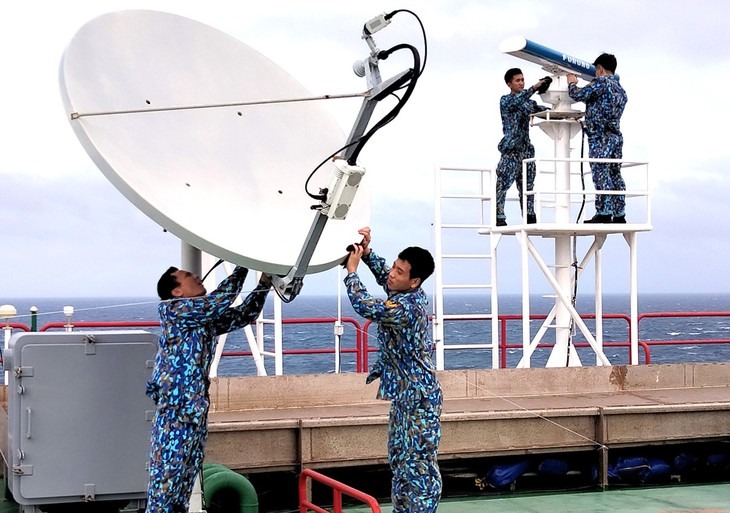 Cán bộ, chiến sĩ bảo dưỡng trang bị trên nhà giàn DK1 - Ảnh: Phòng Tuyên huấn Hải quân |