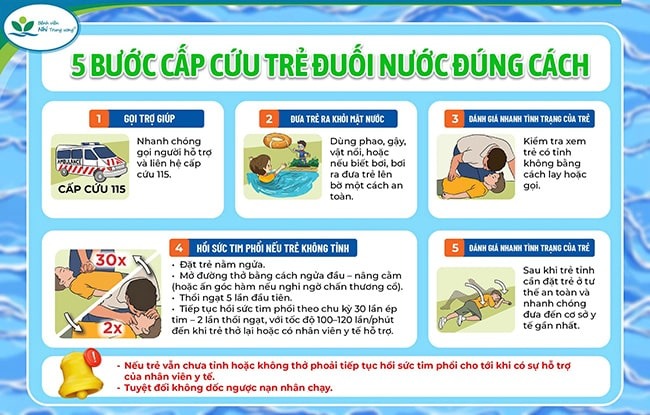 Các bước cấp cứu trẻ đuối nước đúng cách. |