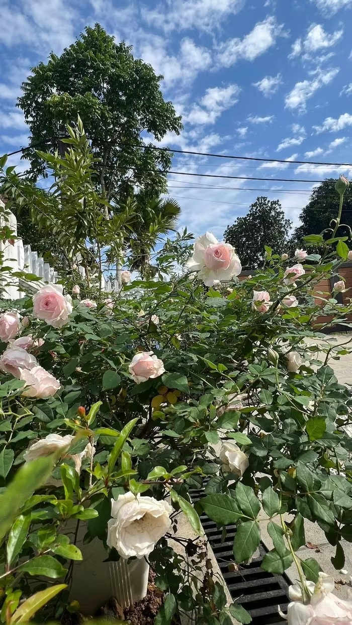 Các khóm hồng đều phát triển tốt, nở rộ hoa và tỏa hương thơm ngát. Ảnh: FB Dang Diem Quynh |