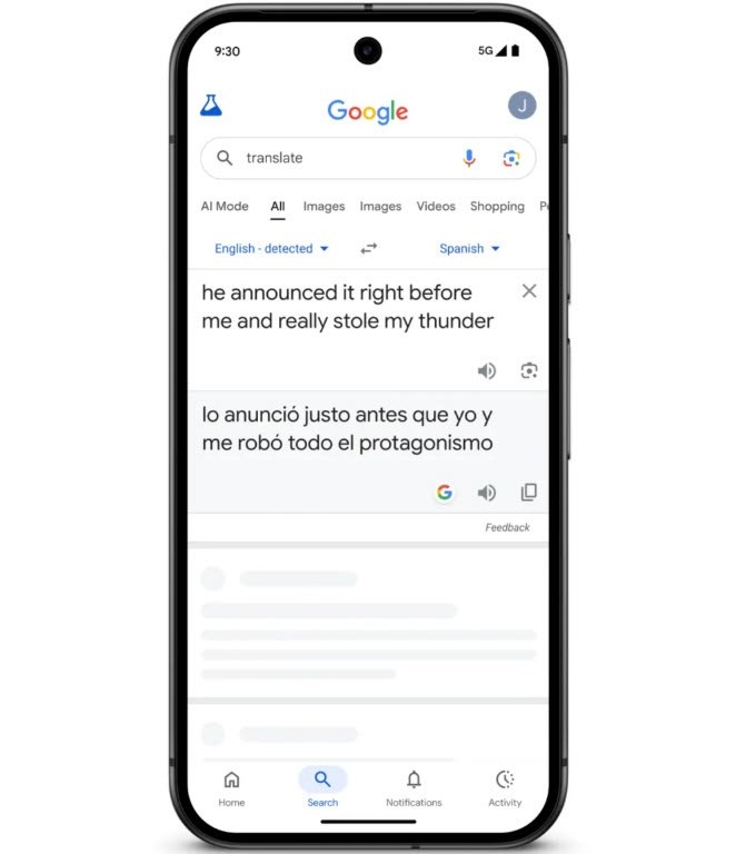 Song song với dịch trực tiếp, Google cũng đang cải thiện chất lượng dịch nhờ Gemini AI. Một trong những hạn chế lớn nhất của dịch máy truyền thống là việc dịch theo nghĩa đen, đặc biệt với thành ngữ và tiếng lóng. Gemini khắc phục điều này bằng cách phân tích ngữ cảnh, từ đó đưa ra bản dịch đúng ý nghĩa thực sự của câu nói.