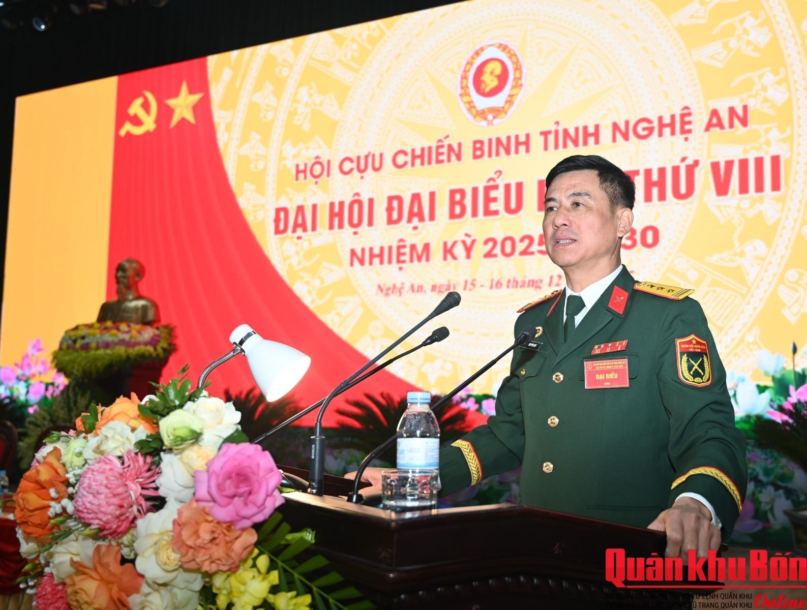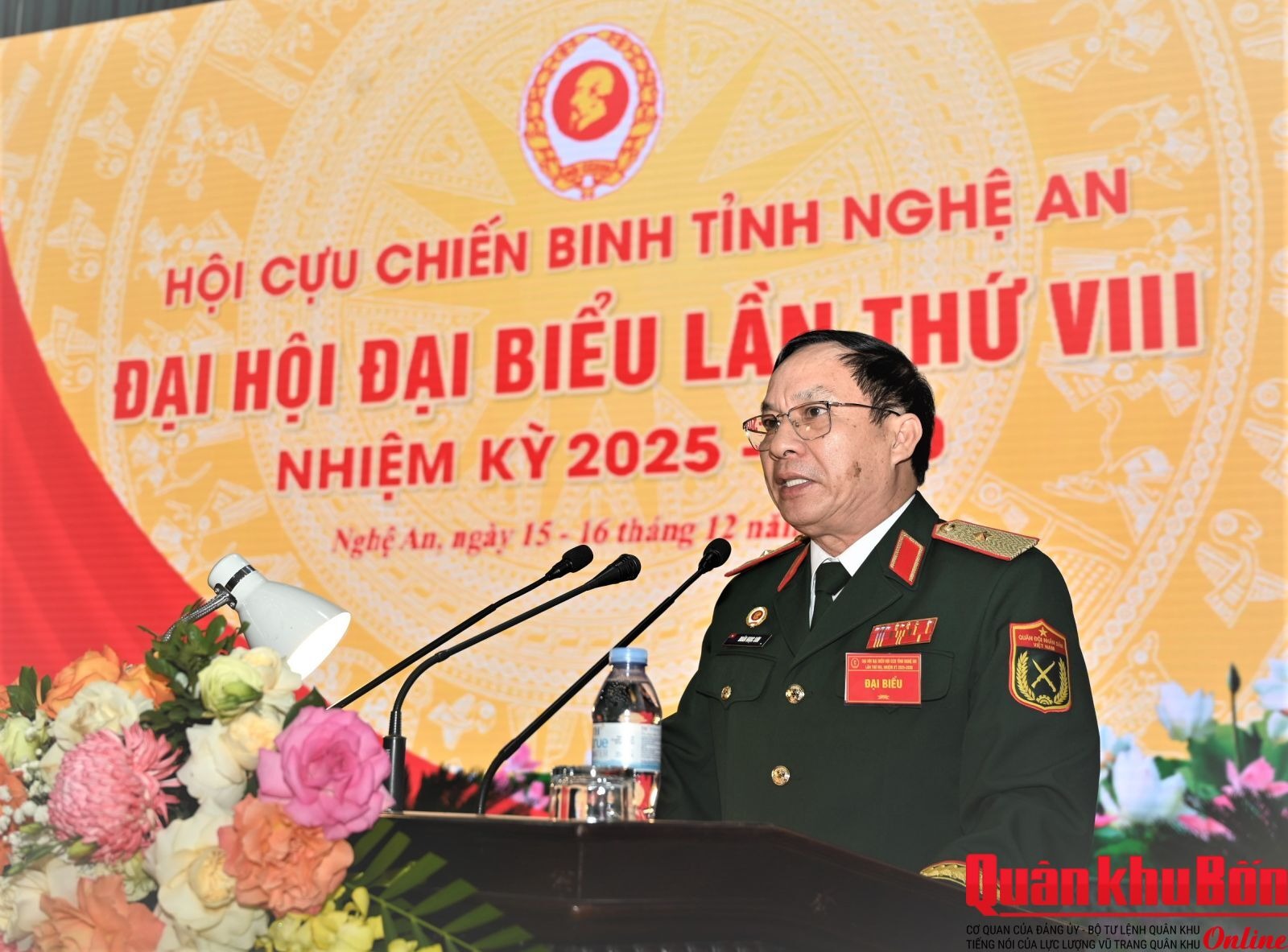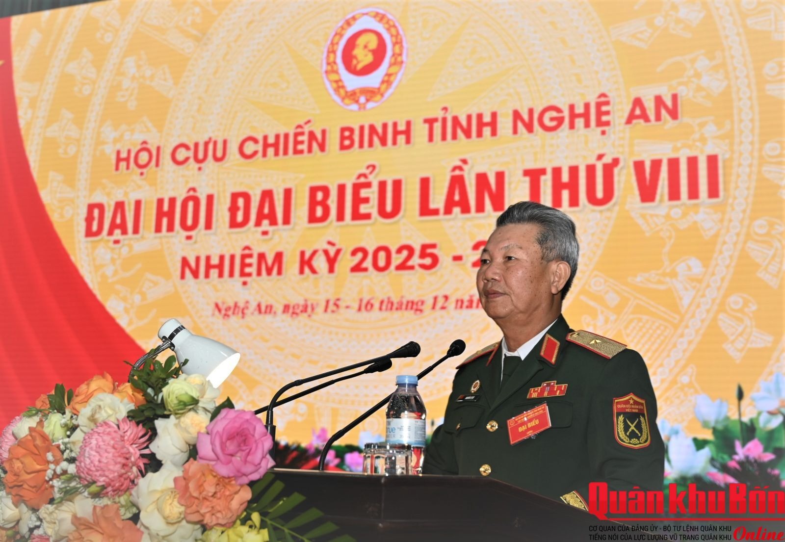 Với chủ đề “Phát huy bản chất “Bộ đội Cụ Hồ”; truyền thống “Trung thành, đoàn kết, gương mẫu, đổi mới”; đẩy mạnh học tập và làm theo tư tưởng, đạo đức, phong cách Hồ Chí Minh, xây dựng tổ chức Hội vững mạnh toàn diện, hoàn thành xuất sắc mọi nhiệm vụ, góp phần thực hiện thắng lợi nhiệm vụ chính trị của địa phương”. Đại hội đã đề ra mục tiêu tổng quát nhiệm kỳ 2025 – 2030 đó là: Tiếp tục động viên CCB trong toàn tỉnh phát huy bản chất, truyền thống “Bộ đội Cụ Hồ”; truyền thống “Trung thành, đoàn kết, gương mẫu, đổi mới”; đẩy mạnh ứng dụng công nghệ thông tin, chuyển đổi số, xây dựng tổ chức Hội vững mạnh toàn diện; góp phần xây Mặt trận Tổ quốc các cấp vững mạnh, củng cố khối đại đoàn kết toàn dân, xây dựng tỉnh Nghệ An - quê hương Chủ tịch Hồ Chí Minh ngày càng giàu đẹp.