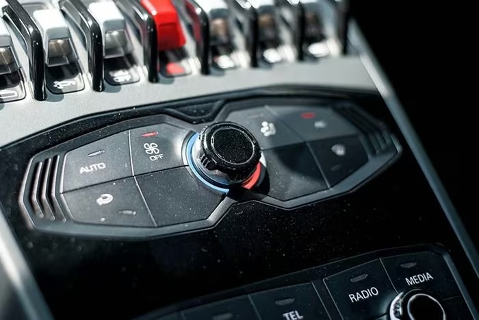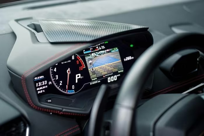 Nội thất của Huracan LP580-2 sử dụng hệ thống thông tin giải trí Lamborghini Infotainment System II, màn hình trung tâm TFT 12,3 inch. Xe có nội thất được bọc da alcantara màu đen đi kèm các chi tiết được khâu chỉ đỏ. Hơn nữa, chiếc xe này còn được trang bị gói ốp carbon Forged Composite độc quyền của Lamborghini và nắp động cơ bằng kính. |