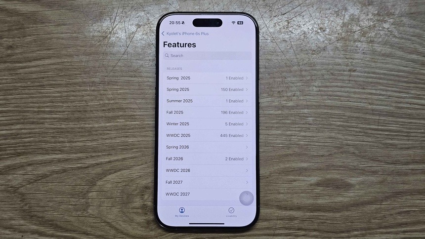 cho thấy ứng dụng Livability hiển thị danh sách tính năng được lên kế hoạch cho WWDC 2025, mùa thu năm 2026 và kể cả WWDC 2027. Các tính năng mới xoay quanh ứng dụng nhắn tin, ảnh, ví và hỗ trợ người khuyết tật.