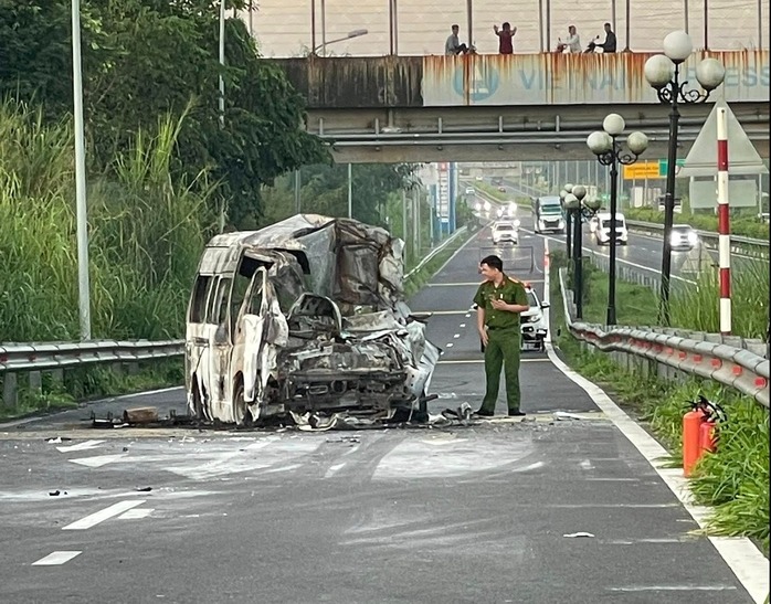 Cú va chạm khiến xe cứu thương bốc cháy dữ dội. Trên xe có 5 người, trong đó 2 người kịp thoát ra ngoài, được đưa đi cấp cứu tại Bệnh viện Đa khoa Long Khánh.