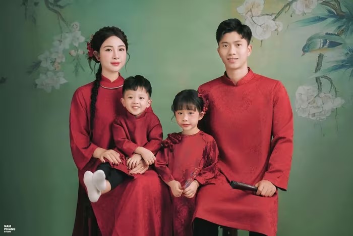 Vợ cầu thủ Phan Văn Đức thướt tha, dịu dàng trong tà áo dài truyền thống