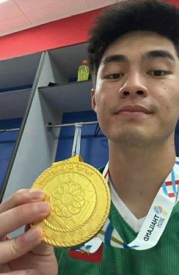 Trong khi đó, thủ môn Trần Trung Kiên, nhân tố góp công không nhỏ trong trậu đấu, khiến nhiều người hâm mộ bật cười khi nhắn tin "khoe" huy chương vàng với TikToker Tina Thảo Thi.
