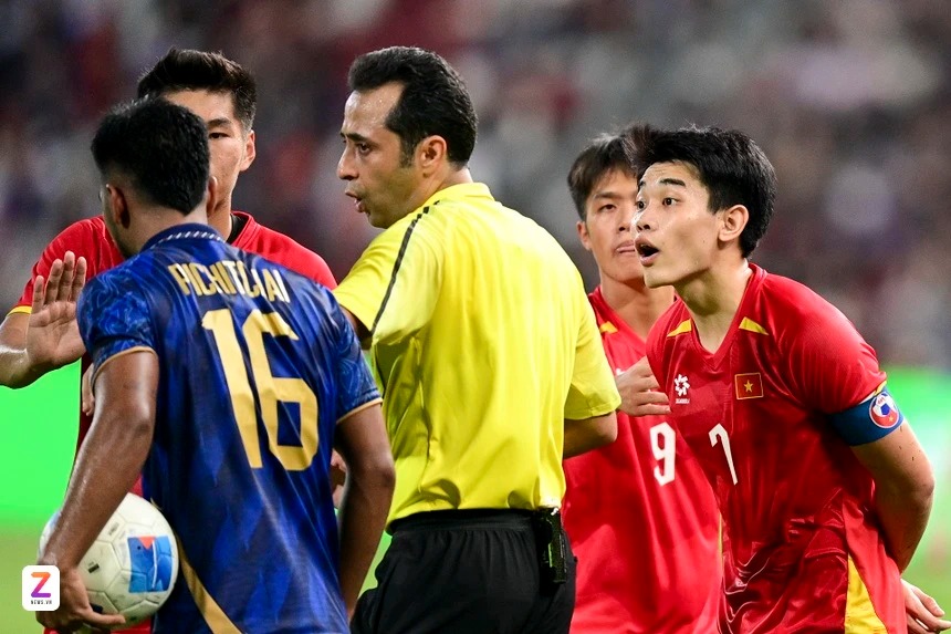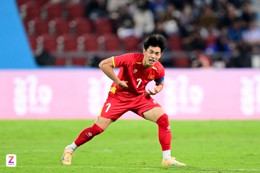Trong số các cầu thủ U22 Việt Nam, chân sút số 7 cũng được người hâm mộ đánh giá là không ngại va chạm, tranh luận với đối thủ. Ở trận chung kết tối 18/12, khoảnh khắc chân sút số 7 phản ứng với cầu thủ số 16 bên U22 Thái Lan cũng viral trên mạng xã hội. Hình ảnh hơi khom lưng, chắp tay sau lưng của anh được nhận xét có phần "thách thức". Ảnh: Duy Hiệu. |