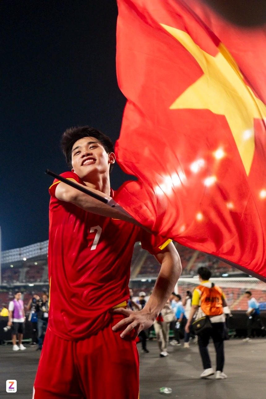 Tối 18/12, U22 Việt Nam có màn lội ngược dòng đầy kịch tính trước U22 Thái Lan để giành huy chương vàng nội dung bóng đá nam SEA Games 33. Một trong những cái tên góp công lớn trong chiến thắng này là Nguyễn Đình Bắc khi anh là người ghi một bàn rút ngắn tỷ số và có những pha phối hợp chuẩn xác với đồng đội. Ảnh: Duy Hiệu. |