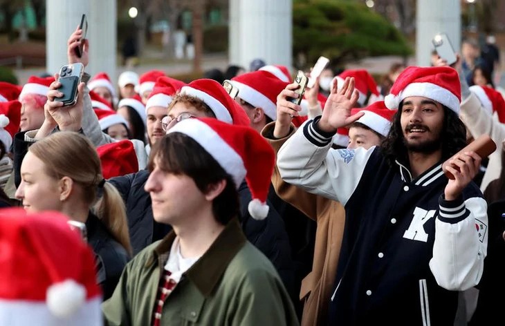 Du học sinh cùng tham gia sự kiện Giáng sinh tại Đại học Keimyung, thành phố Daegu - Ảnh: NEWSIS |