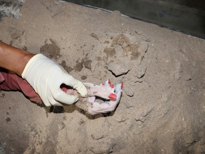 Bàn tay thi thể có 6 ngón, sơn màu đỏ. |
