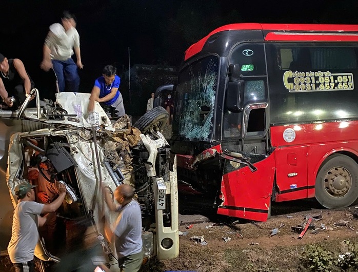 Xe khách tông xe tải, người dân cạy ca-bin cứu người