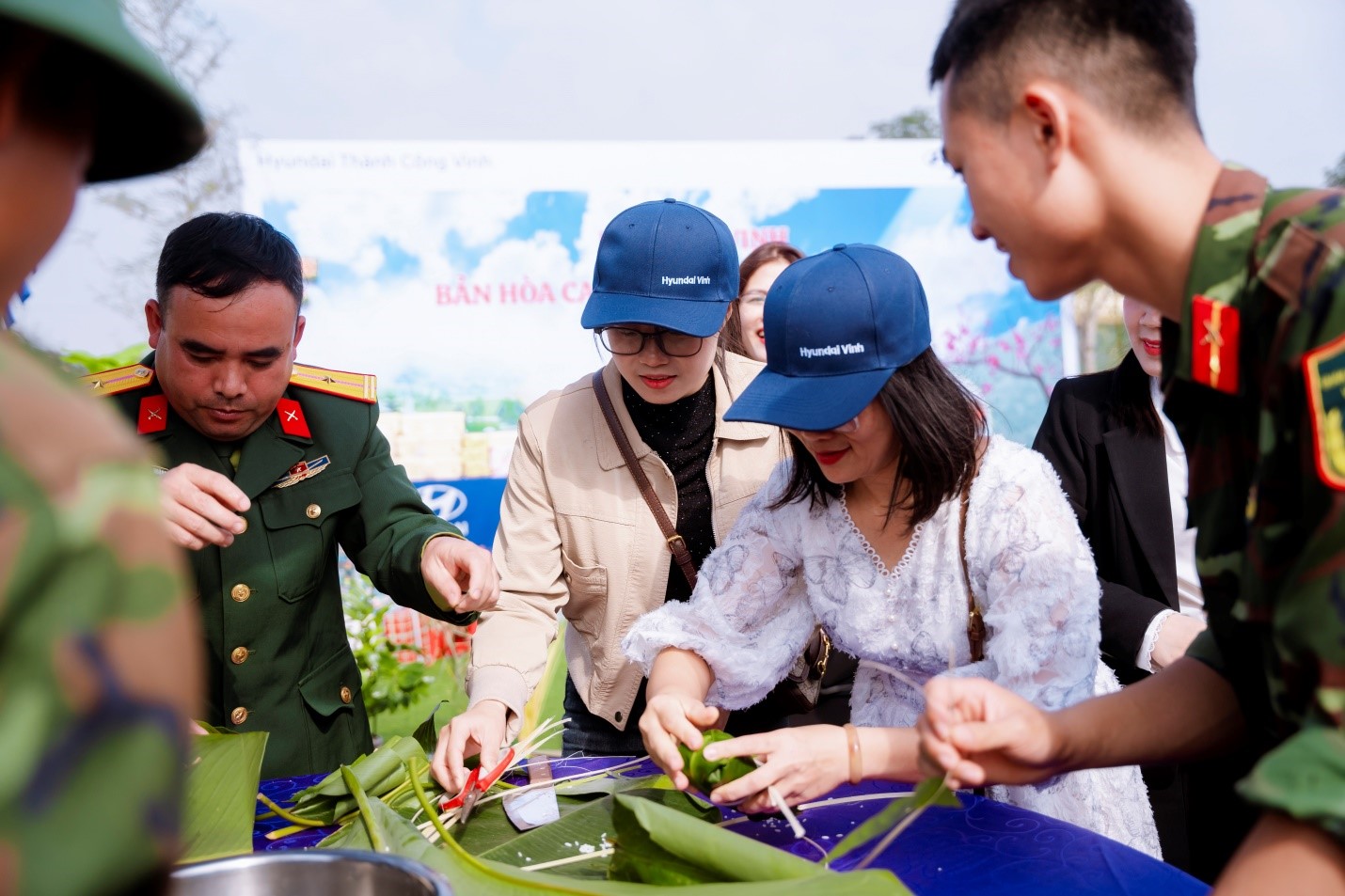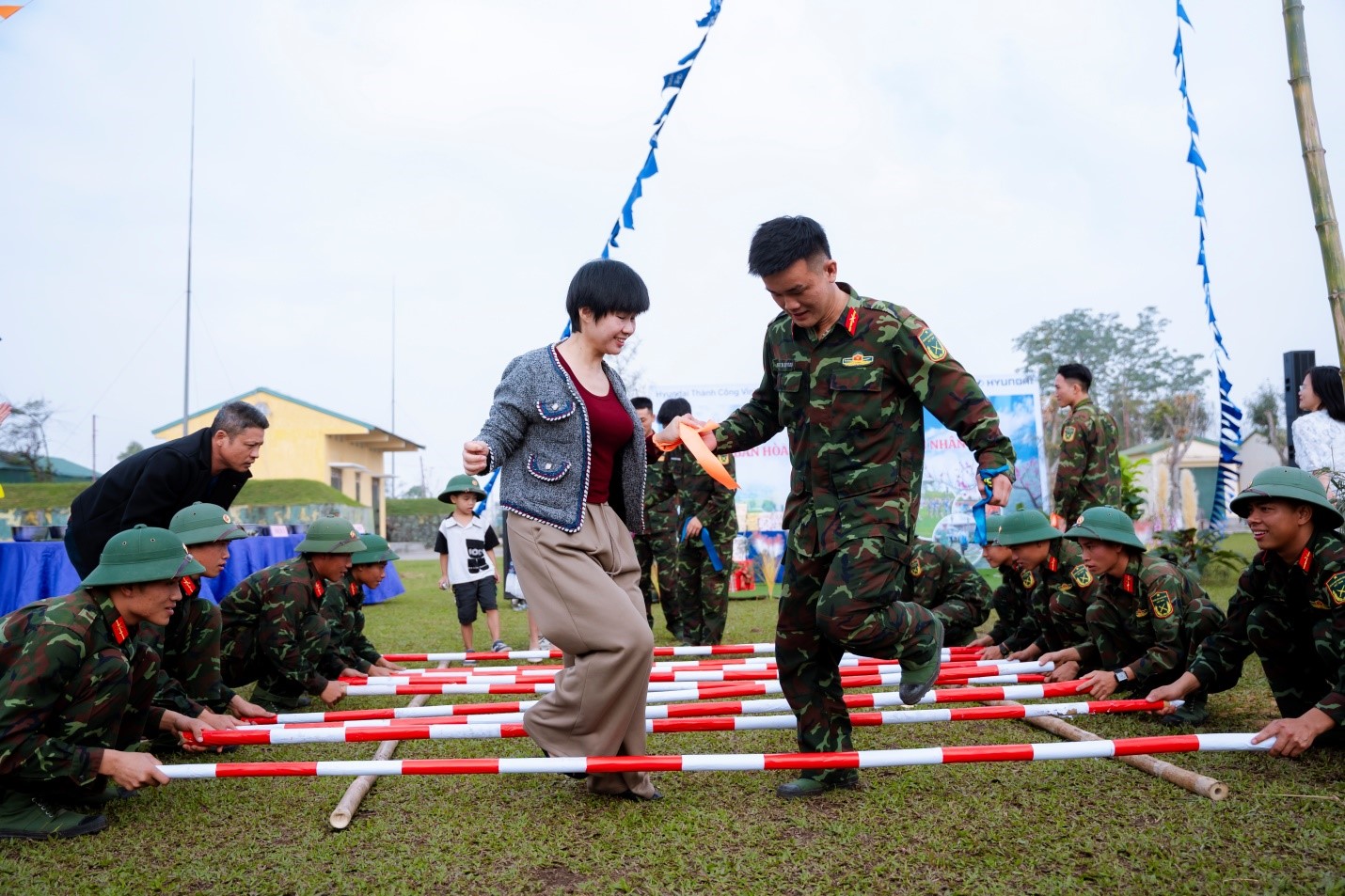 Song song với các hoạt động mang tính lịch sử và giáo dục, sự kiện còn mang đến không gian vui tươi, gắn kết thông qua các tiết mục văn nghệ và trò chơi dân gian. Tiếng cười giòn tan vang lên theo từng nhịp nhảy sạp, sự hào hứng trong trò chơi đập niêu, hay tinh thần đoàn kết khi khách hàng cùng các chiến sĩ gói bánh chưng gửi tặng người lính đã tạo nên bầu không khí ấm áp, chan chứa tình quân dân.