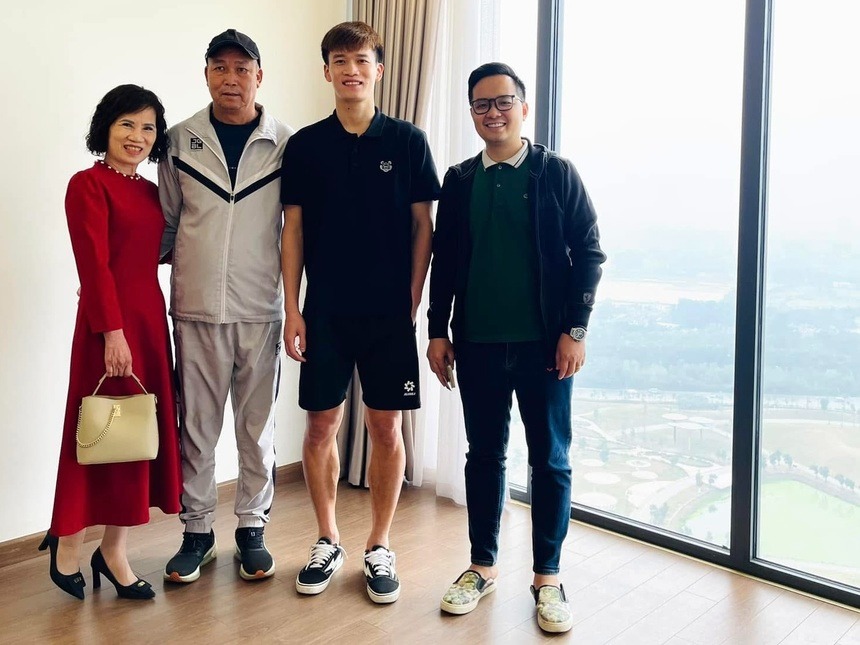 Hoàng Đức đã xuống tiền mua căn hộ cao cấp rộng 120 m2 tại khu vực Mỹ Đình, Hà Nội từ năm 2024. Ngôi nhà này thuộc một dự án hot nên có giá hơn 10 tỷ đồng, đặc biệt là có view nhìn ra SVĐ quốc gia Mỹ Đình. Vì bận rộn, đến đầu năm nay, ngay sau khi cùng đội tuyển Việt Nam trở về từ Thái Lan sau ASEAN Cup 2024, tiền vệ sinh năm 1998 mới cùng bố mẹ đi nhận nhà mới. |