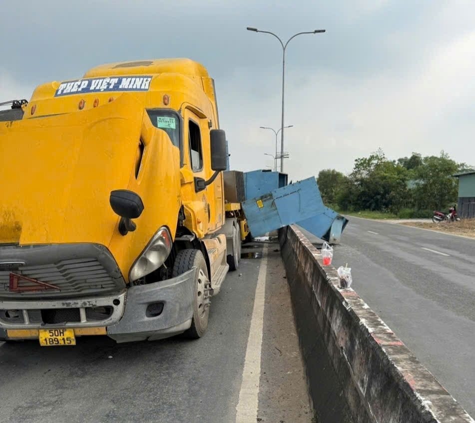 Trước đó, khoảng 13h30' chiều cùng ngày, tại km 25+900 trên tuyến đường tỉnh ĐT 830, đoạn qua ấp 1, xã Long Cang, tỉnh Tây Ninh, tài xế Nguyễn Trọng Nhân (37 tuổi), ngụ TP.HCM điều khiển xe ô tô đầu kéo mang biển số 50H-189.XX, kéo theo sơ-mi rơ-moóc chở container biển số 50RM-056.XX, lưu thông trên tuyến ĐT 830. Khi xe di chuyển đến khu vực trên, dây chằng buộc hàng hóa bất ngờ bị đứt, lúc này tài xế phải phanh gấp và dừng xe khẩn cấp.