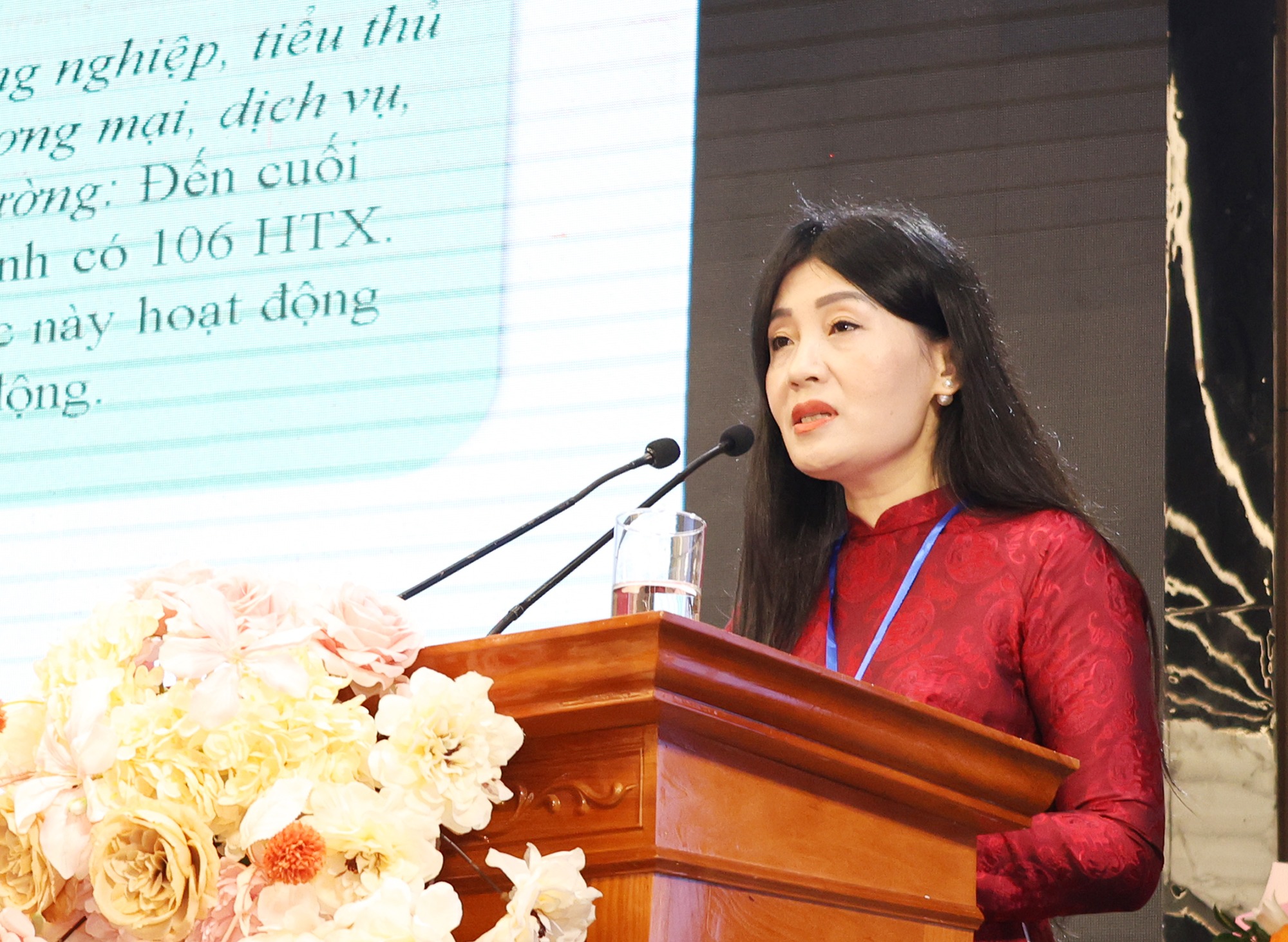 Phó Chủ tịch Liên minh HTX tỉnh Đặng Thị Bích Thảo trình bày Báo cáo Chính trị |