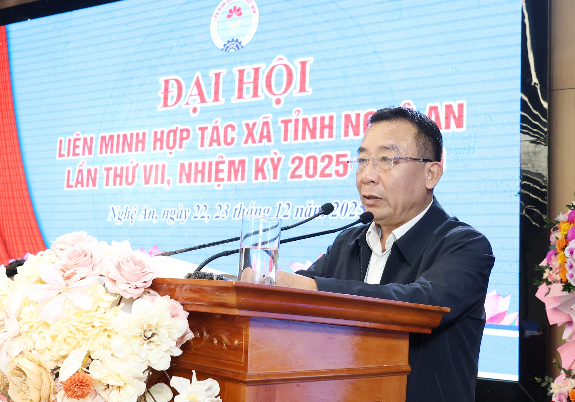 Phó Chủ tịch UBND tỉnh đề nghị Liên minh HTX tỉnh cần quán triệt sâu sắc và tổ chức thực hiện nghiêm túc Nghị quyết Đại hội Đảng bộ tỉnh nhiệm kỳ 2025–2030, Nghị quyết số 20-NQ/TW của Ban Chấp hành Trung ương và Luật HTX năm 2023. Xác định phát triển KTTT, HTX là một trong những động lực quan trọng góp phần thực hiện mục tiêu xây dựng Nghệ An trở thành tỉnh khá của cả nước. Gắn phát triển HTX với cơ cấu lại nền kinh tế, đổi mới mô hình tăng trưởng, phát triển nông nghiệp xanh, thông minh, sinh thái và xây dựng nông thôn mới, đô thị văn minh. Liên minh HTX tỉnh cần chủ động tham mưu cho Tỉnh ủy, UBND tỉnh cụ thể hóa các chủ trương lớn thành chương trình, đề án, kế hoạch phát triển KTTT phù hợp với từng vùng, từng lĩnh vực.