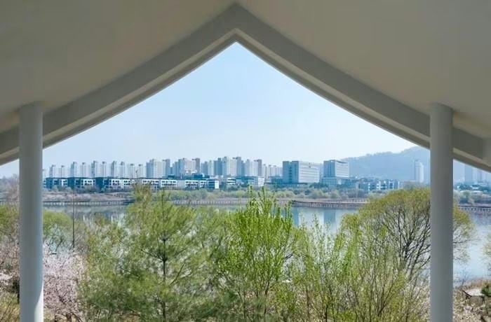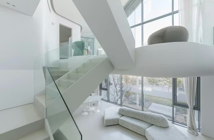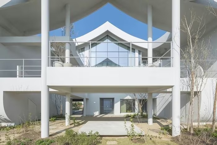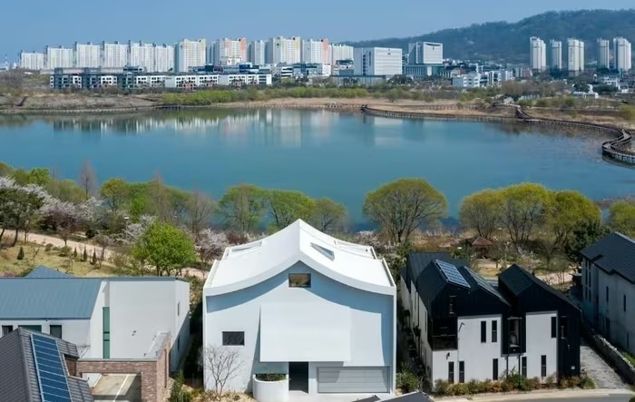 Căn biệt thự màu trắng có diện tích 383 m2, hoàn thành năm 2025 tại Jeonju (Hàn Quốc), đối diện công viên ven hồ. Ảnh: Architizer |