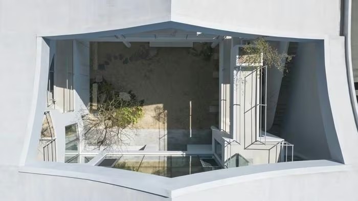 Nhìn từ trên xuống, sân trong được bao bọc bởi lớp mái cong, mang đến cảm giác một không gian tách biệt. Ảnh: Architizer |