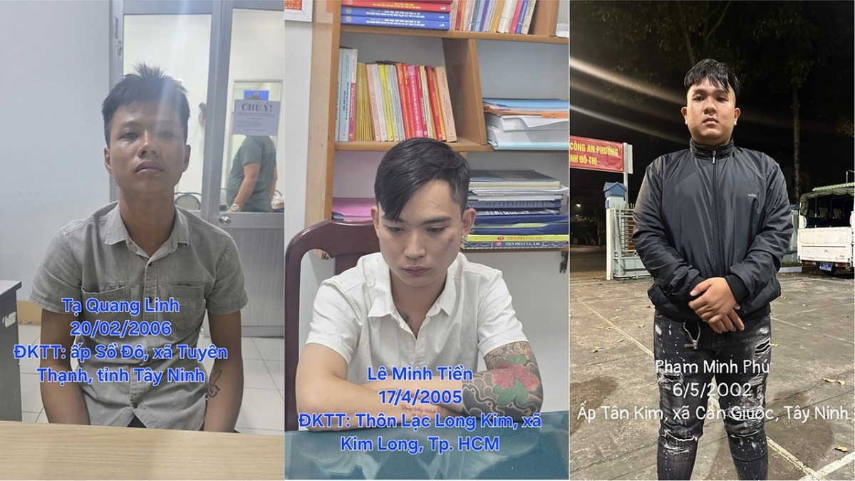 Ngày 24/12, Phòng Cảnh sát hình sự- Công an tỉnh Tây Ninh đang tạm giữ Lê Minh Tiền (SN 2005, quê Bà Rịa-Vũng Tàu cũ); Tạ Quang Linh (SN 2006) và Phan Minh Phú (SN 2002), cùng quê Tây Ninh, để điều tra xử lý về hành vi “Giết người”.