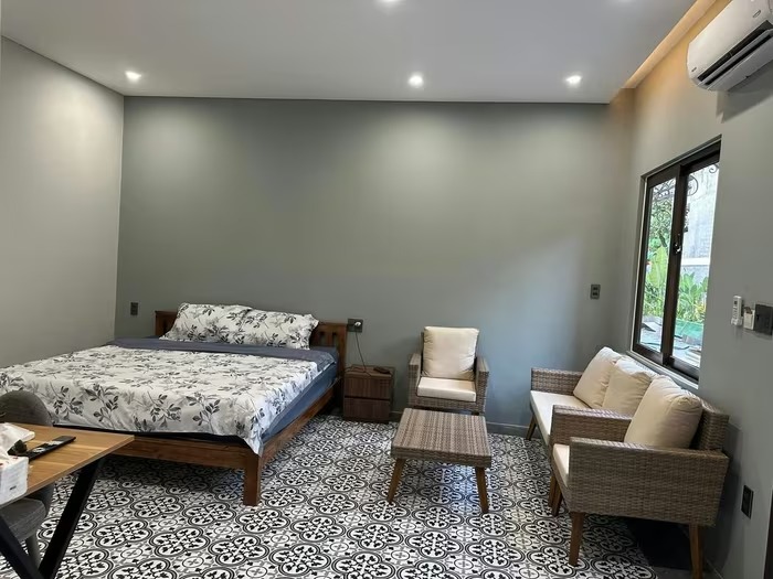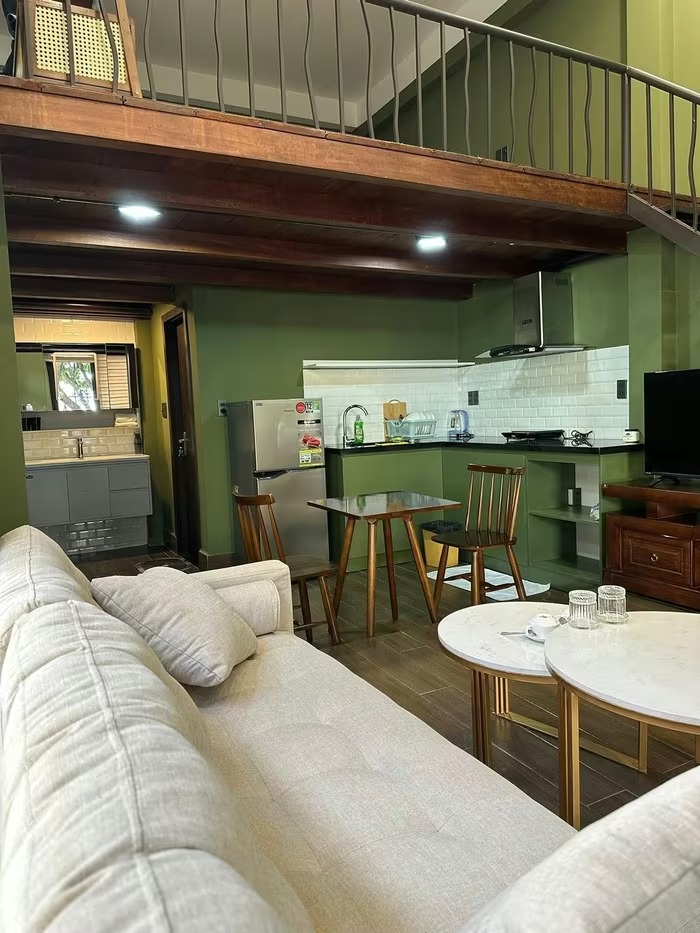 Dù diện tích nhỏ, không gian vẫn được bố trí đầy đủ công năng với sofa, bếp nấu, bàn ăn và các khu sinh hoạt cần thiết. Ảnh: FB Đinh Thị Thúy Hà |