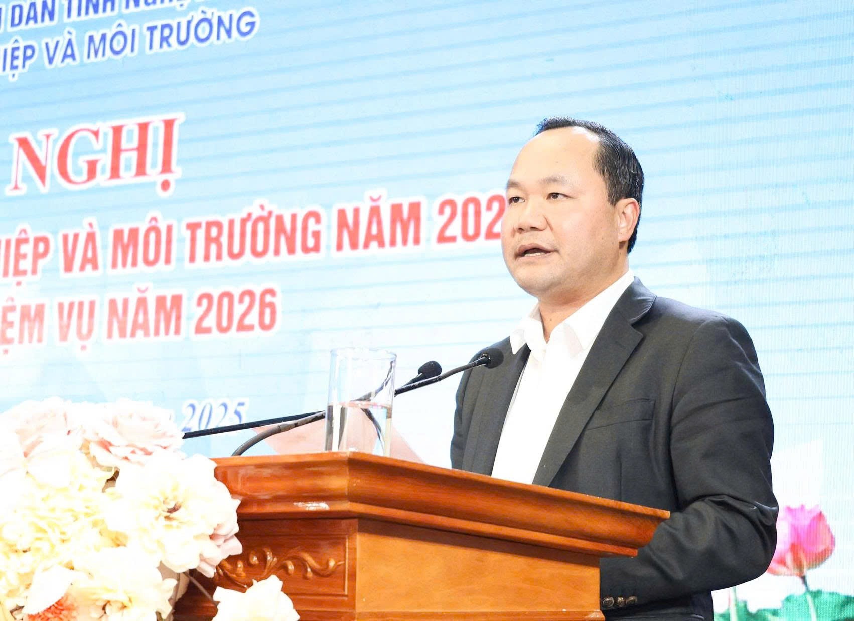 Phát biểu kết luận hội nghị, Phó Chủ tịch UBND tỉnh Nguyễn Văn Đệ đánh giá, năm 2025 là một năm nhiều khó khăn, thách thức, nhất là diễn biến thời tiết cực đoan, thiên tai, dịch bệnh; yêu cầu quản lý đa ngành, đa lĩnh vực ngày càng cao; nhiều quy định pháp luật mới được ban hành, tác động trực tiếp đến lĩnh vực nông nghiệp, đất đai, tài nguyên, môi trường. Trong bối cảnh đó, ngành Nông nghiệp và Môi trường đã nỗ lực rất lớn, đạt được nhiều kết quả tích cực, khá toàn diện, đóng góp quan trọng vào ổn định kinh tế – xã hội của tỉnh. Thay mặt lãnh đạo UBND tỉnh, Phó Chủ tịch UBND tỉnh biểu dương và ghi nhận sự nỗ lực, tinh thần trách nhiệm của toàn ngành Nông nghiệp và Môi trường trong năm 2025.