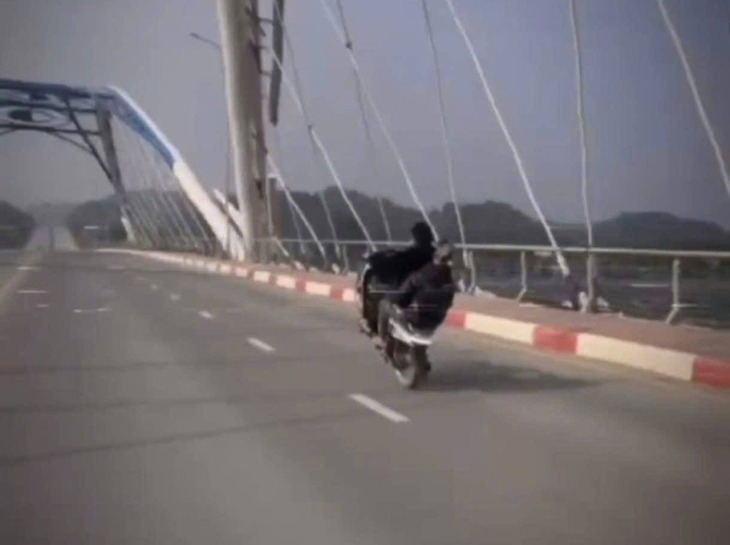 Trần Hữu Anh bốc đầu xe máy trên cầu Giới Phiên, phường Âu Lâu, tỉnh Lào Cai - Ảnh cắt từ clip |