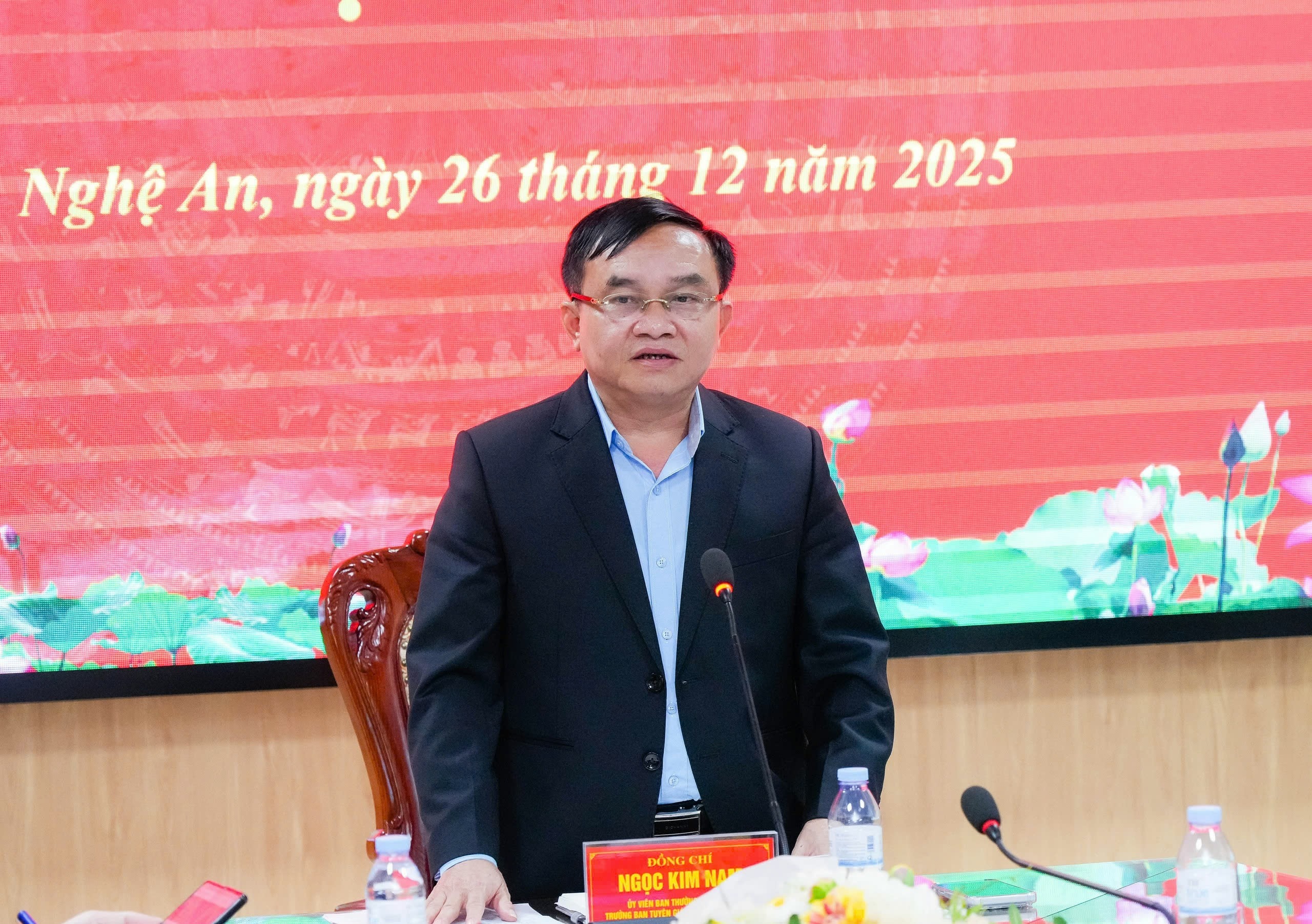 Trưởng Ban Tuyên giáo và Dân vận Tỉnh ủy tỉnh Nghệ An Ngọc Kim Nam phát biểu tại cuộc họp. |