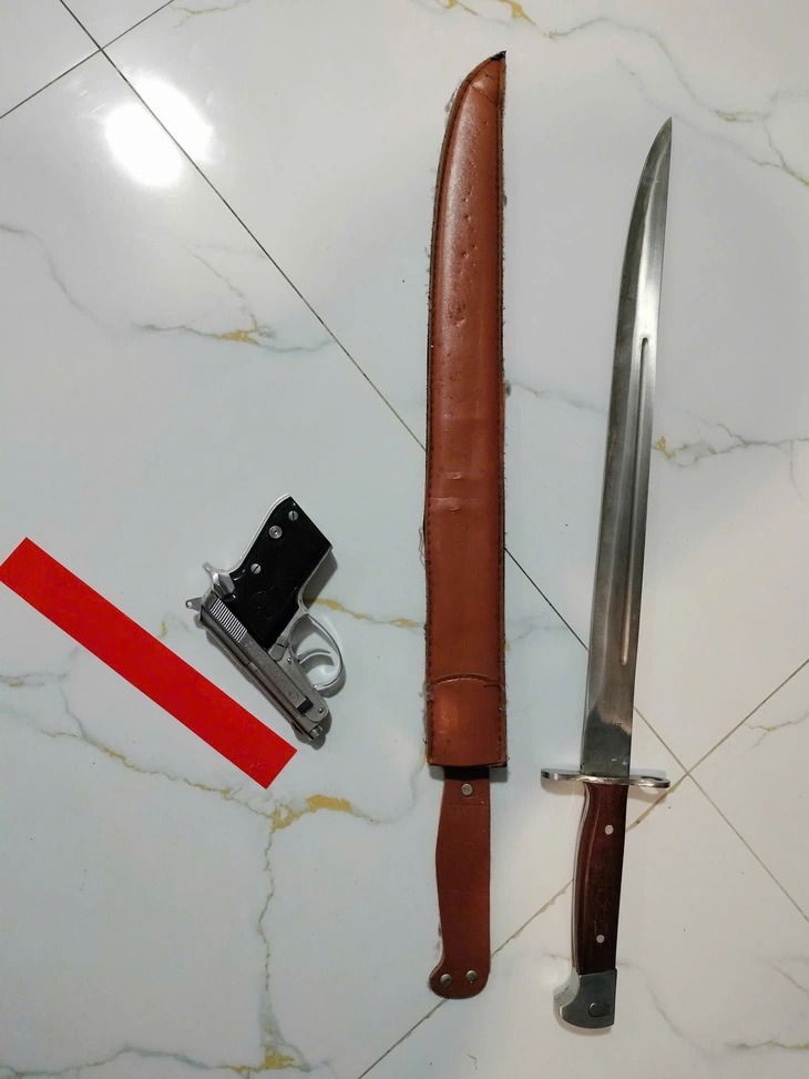 Súng và dao kiếm công an thu giữ - Ảnh: C02 |
