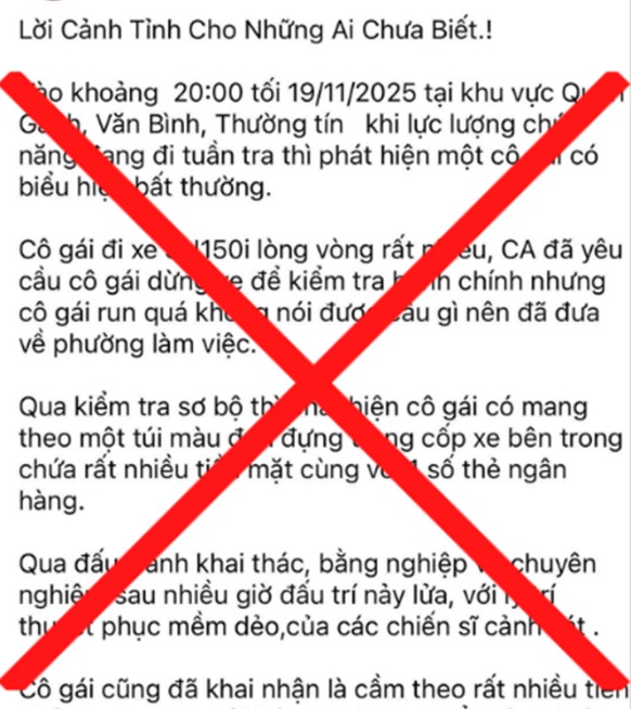 Trước đó, trên mạng xã hội xuất hiện bài đăng "lời cảnh tỉnh cho những ai chưa biết" với nội dung sai sự thật về cô gái mang nhiều tiền đã run rẩy không nói được câu gì, công an đưa về phường làm việc.