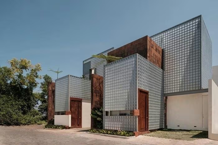 Mặt tiền với các khối gạch kính xếp lớp, tạo hình kín đáo nhưng vẫn cho ánh sáng xuyên qua. Ảnh: Archdaily |