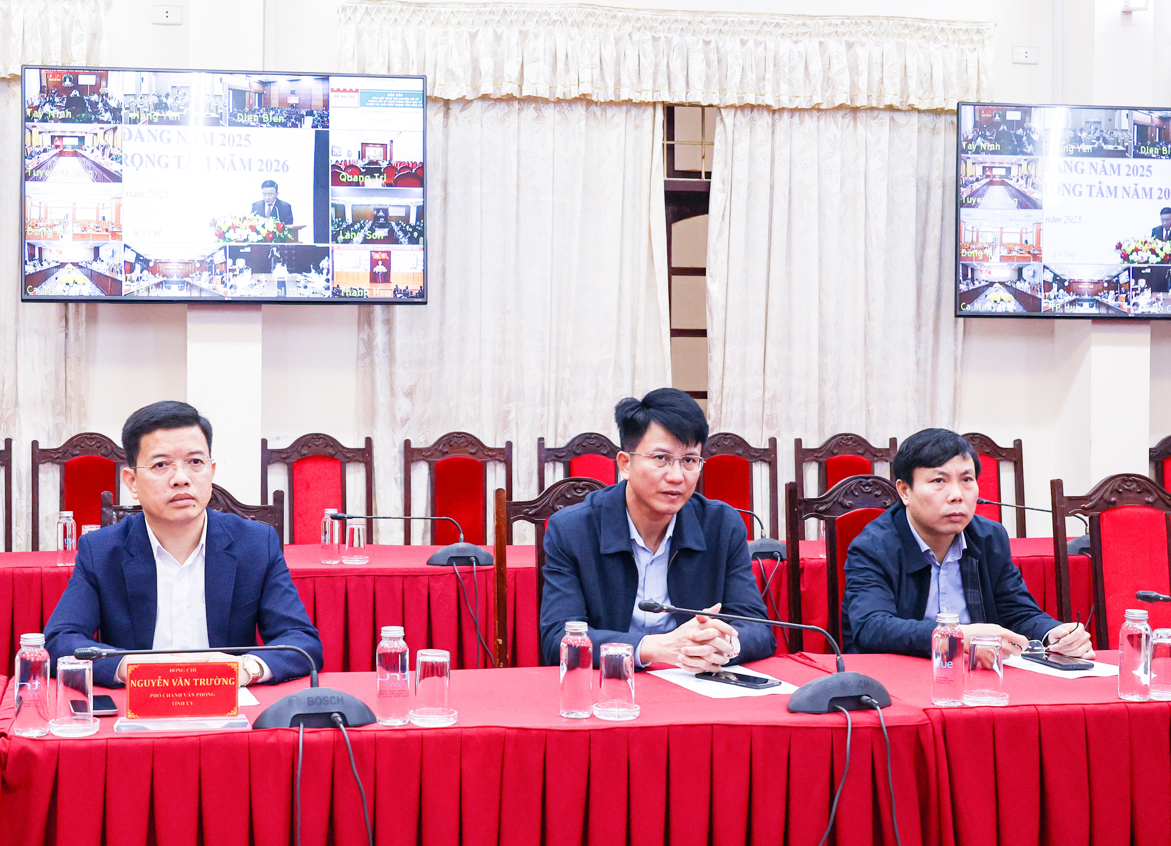 Tham dự hội nghị tại điểm cầu tỉnh Nghệ An có đồng chí Võ Trọng Hải – Phó Bí thư Tỉnh ủy, Chủ tịch UBND tỉnh; các đồng chí Ủy viên Ban Thường vụ Tỉnh ủy, lãnh đạo các Ban, Sở, ngành liên quan.