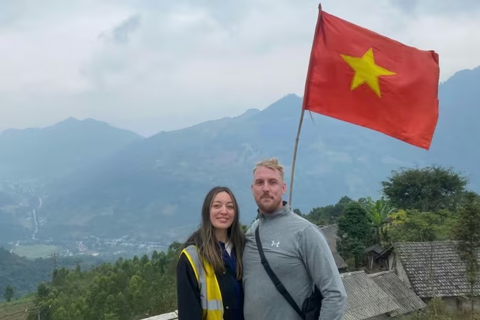 Adam Troy và Jahna Lee chụp ảnh tại Hà Giang. |