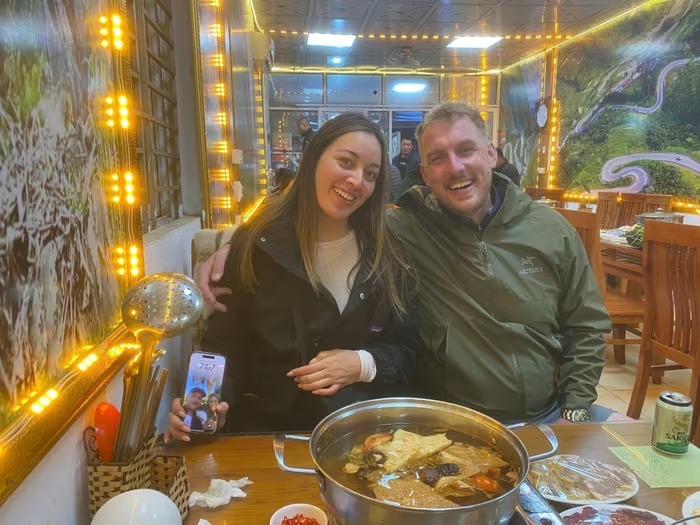 Sau khi trải nghiệm cái lạnh vùng cao, hai vị khách dần thích nghi và bắt đầu tận hưởng trọn vẹn chuyến đi. Trong hành trình, họ còn hào hứng thử nhiều món ăn địa phương, trong đó có trứng vịt lộn và không ngớt lời khen ngon.