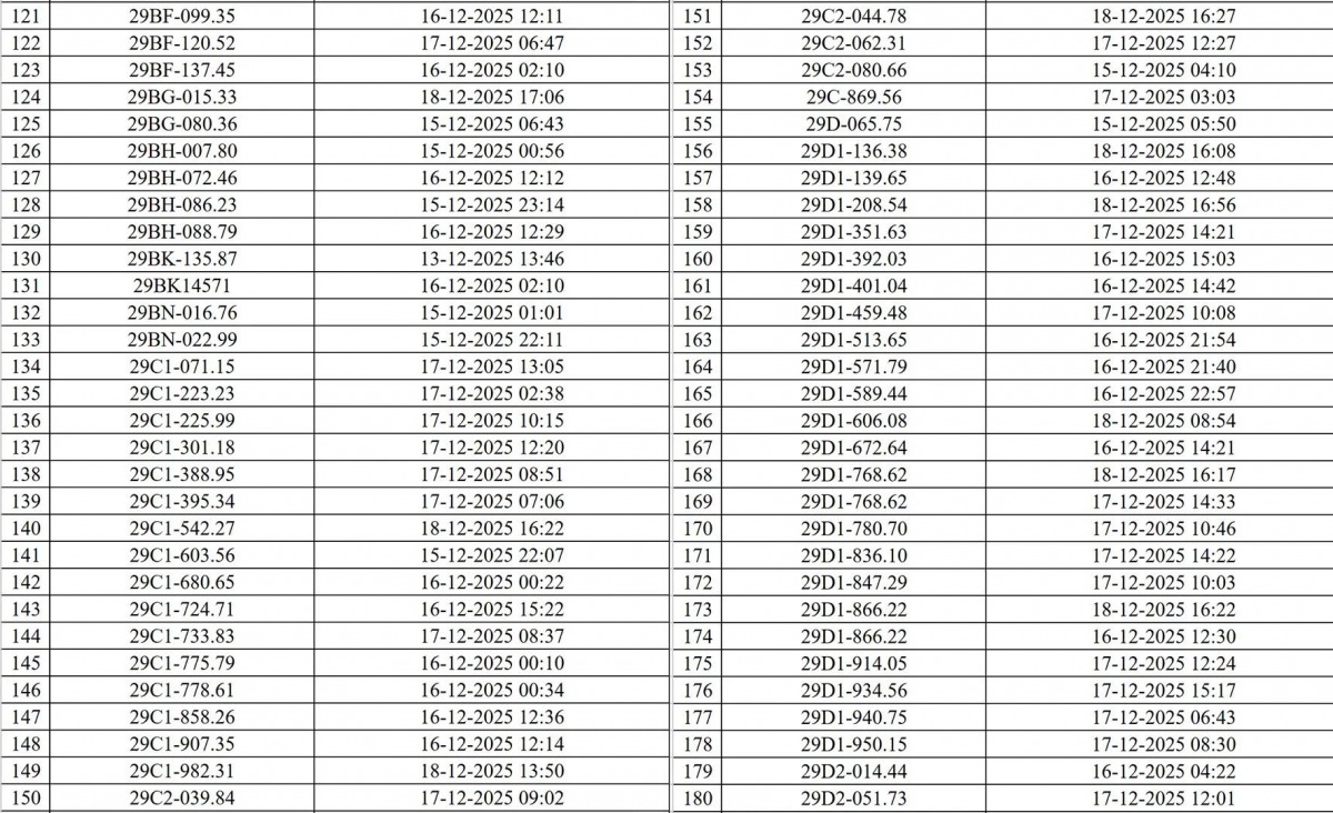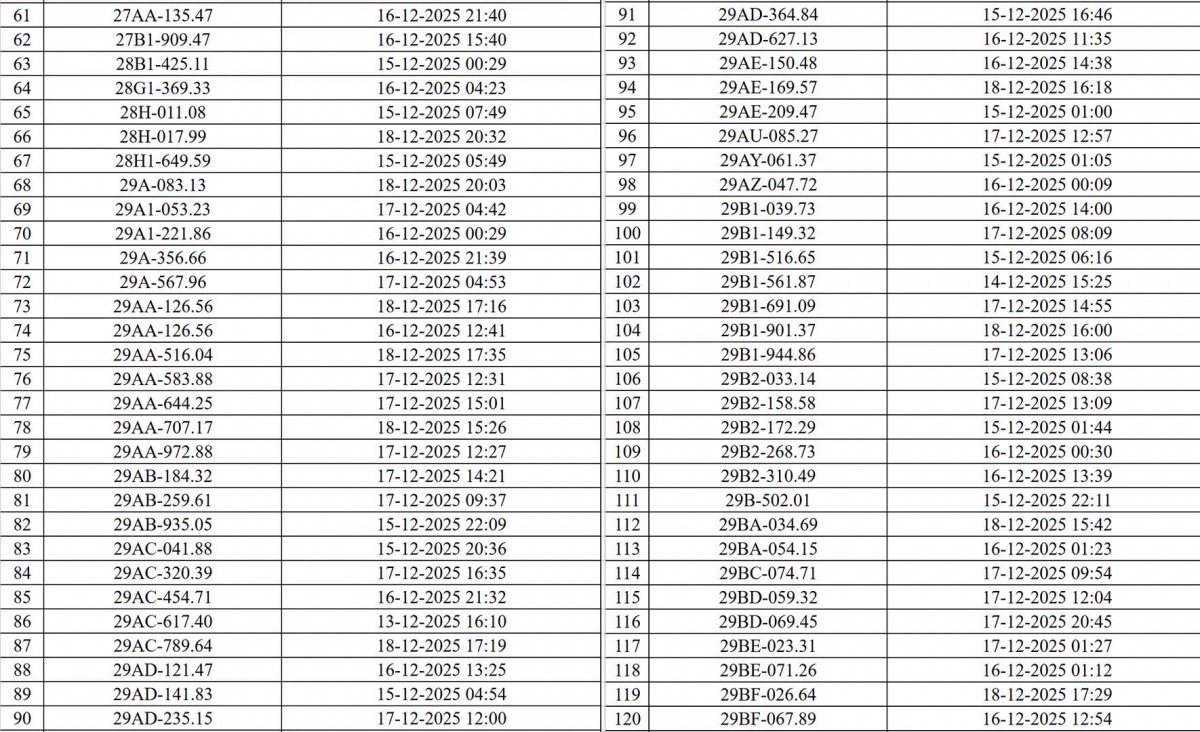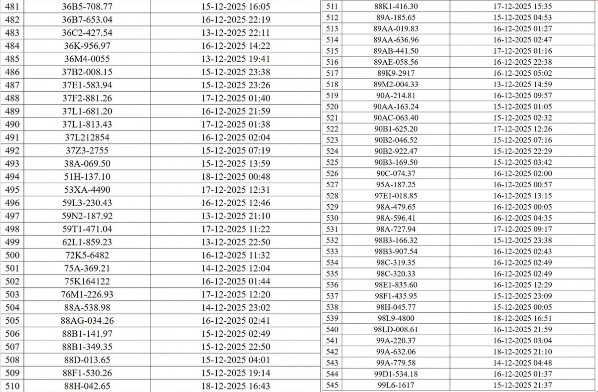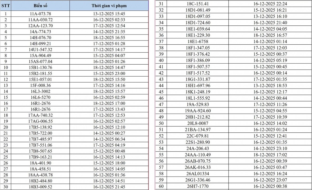 Chi tiết danh sách 545 phương tiện vi phạm bị phát hiện qua hệ thống Camera AI