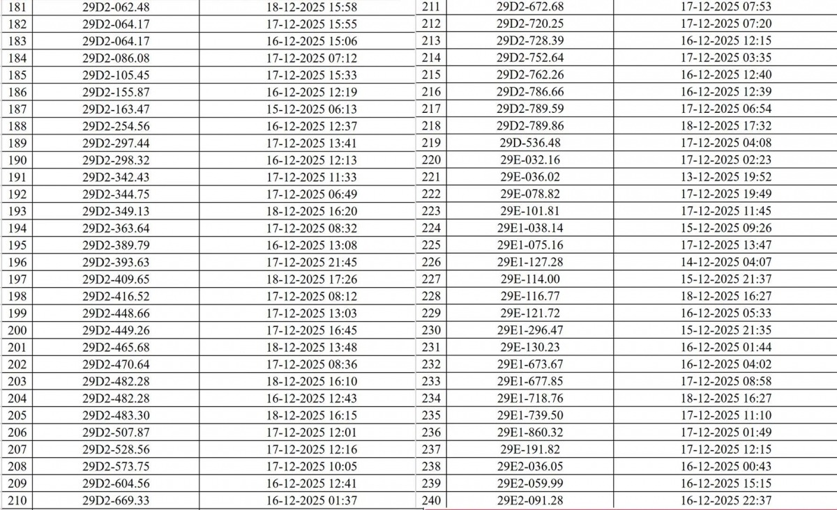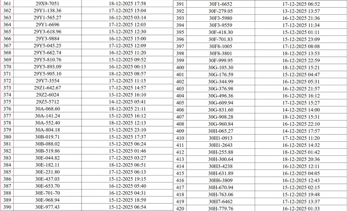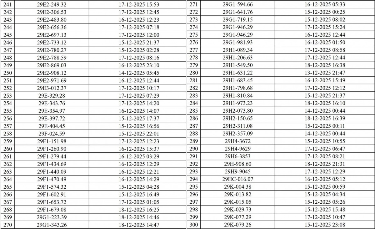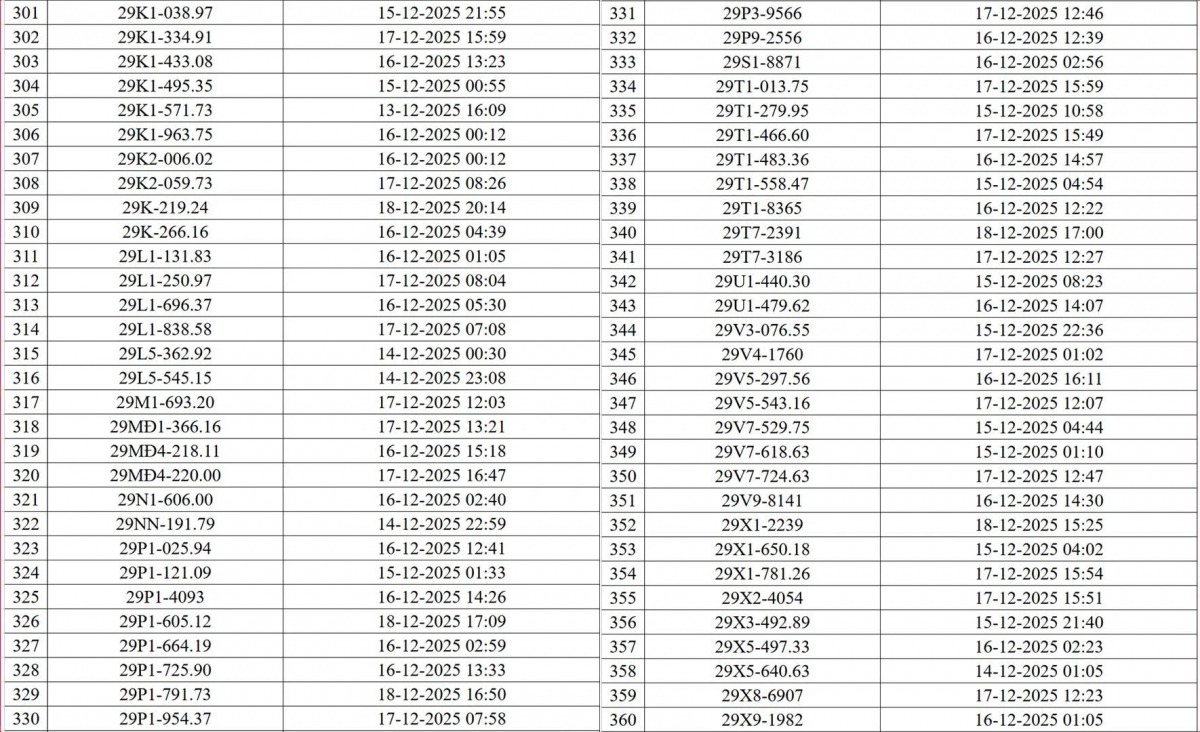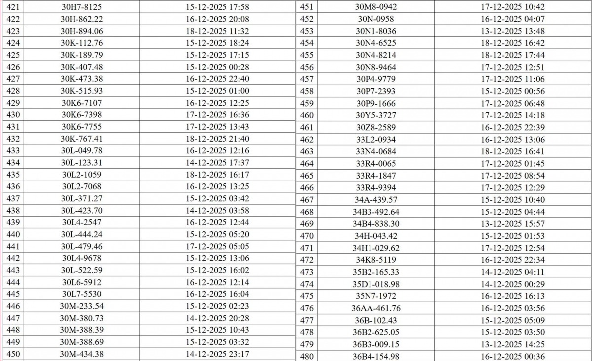 Chi tiết danh sách 545 phương tiện vi phạm bị phát hiện qua hệ thống Camera AI