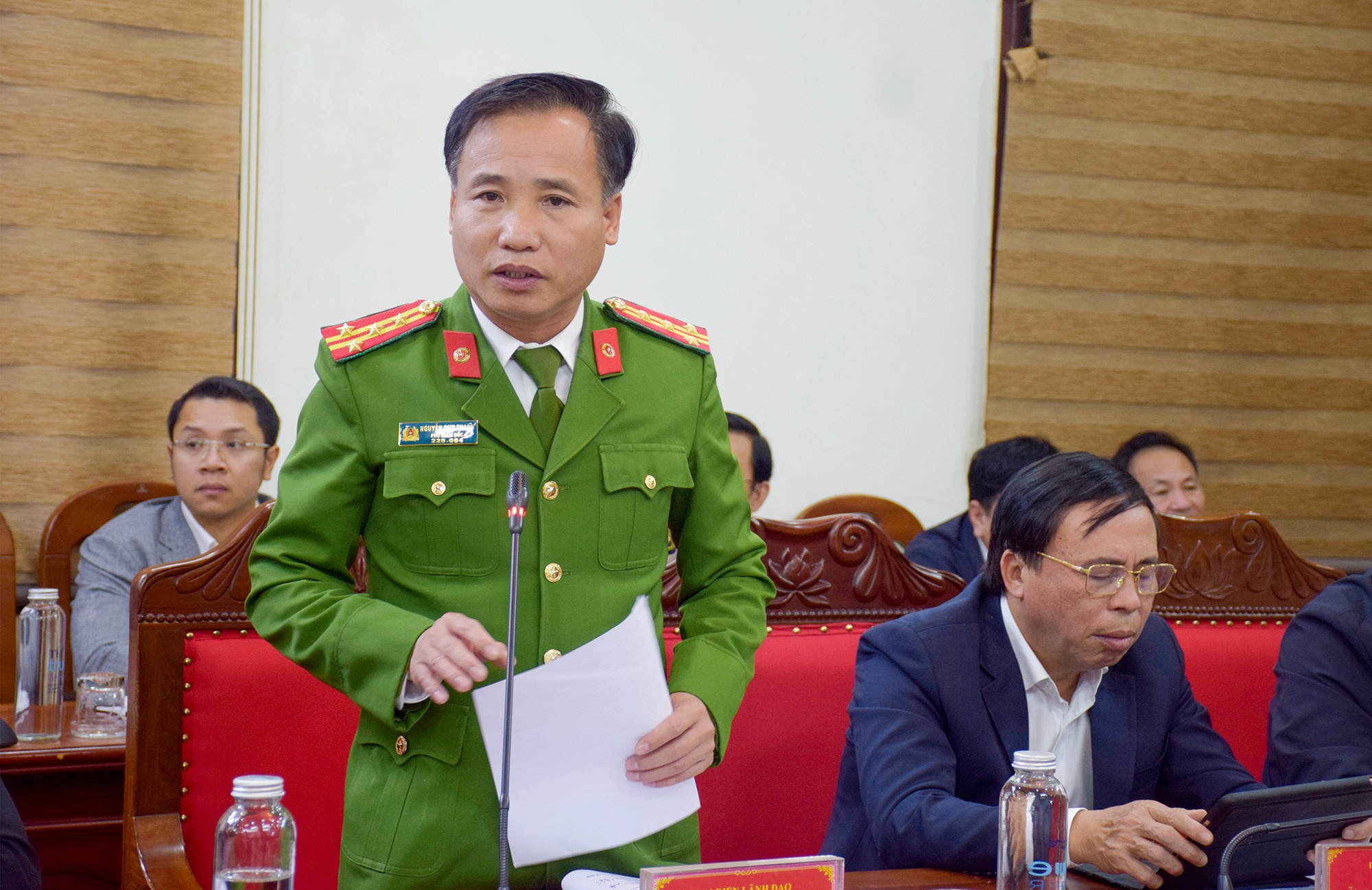 Phó Giám đốc Công an tỉnh Nguyễn Duy Thanh báo cáo tình hình đấu tranh phòng chống tội phạm |