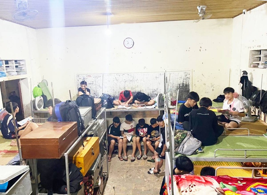 Phòng nội trú của Trường Phổ thông DTNT THCS Con Cuông chật chội, xuống cấp. |