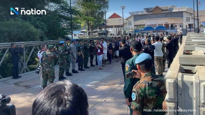 Thái Lan bàn giao 18 binh sĩ Campuchia tại cửa khẩu Ban Phakkat, thuộc huyện Pong Nam Ron, tỉnh Chanthaburi hôm 31-12. Ảnh: Nation |