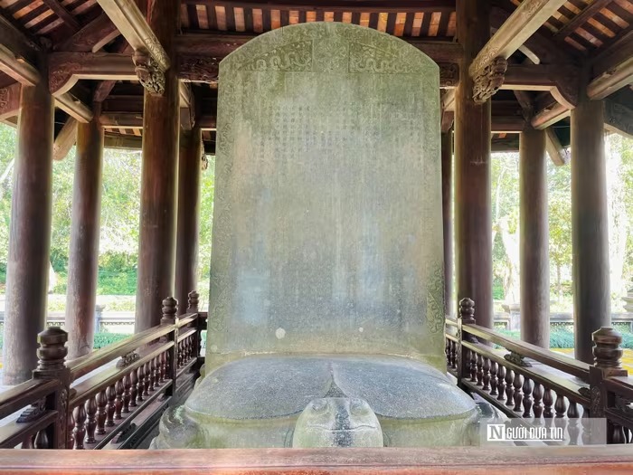 Du khách trầm trồ với nghệ thuật điêu khắc của văn bia. |
