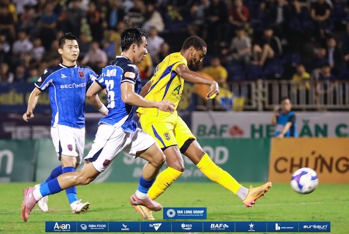 SLNA (áo vàng) trong trận đấu với Becamex TP.HCM. Ảnh: FBNV |