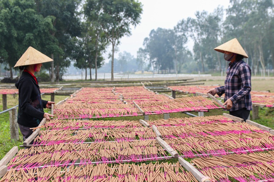 Nghề làm hương không chỉ mang lại thu nhập ổn định cho các chủ xưởng mà còn giải quyết bài toán việc làm cho lao động địa phương. Tại xưởng của gia đình ông Việt thường xuyên có từ 10-20 nhân công làm việc.