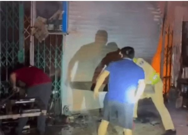 Tổ công tác Trạm CSGT Diễn Châu phối hợp người dân phá cửa giải cứu các nạn nhân mắc kẹt bên trong ngôi nhà bị cháy |