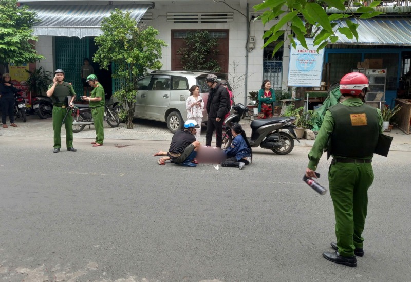 Sau khi gượng sức chạy một đoạn đường trong con hẻm ra tuyến phố chính, nạn nhân gục ngã trên mặt đường. |