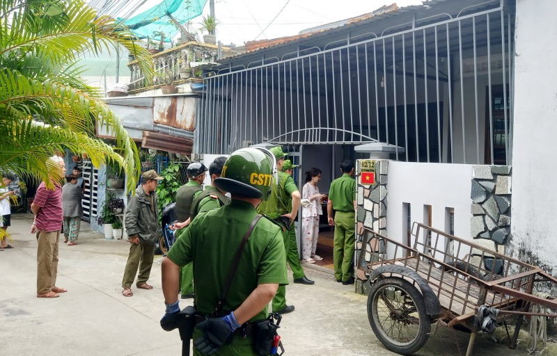 Công an phường Tuy Hòa và Cảnh sát 113 Đắk Lắk đến căn nhà xảy ra vụ việc để truy tìm hung thủ. Ảnh: Việt Tường. |